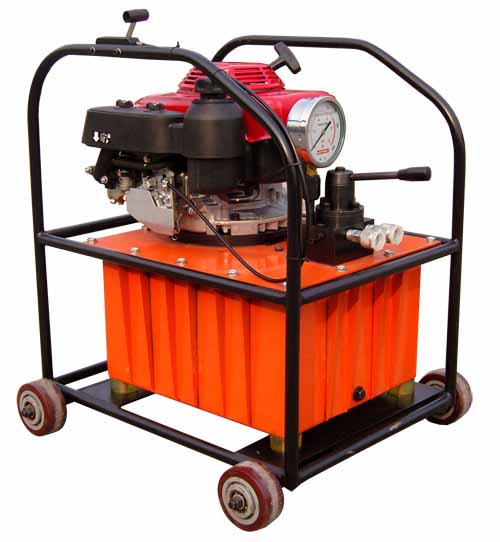 J系列機(jī)動(dòng)泵站,采用日本本田公司生產(chǎn)的汽油機(jī)作動(dòng)力源,油泵可分單級泵、雙級泵,可配置手動(dòng)換向閥等控制元件,可實(shí)現(xiàn)多種油路控制形式。