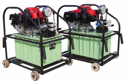 J系列機動泵站,采用日本本田公司生產(chǎn)的汽油機作動力源,油泵可分單級泵、雙級泵,可配置手動換向閥等控制元件,可實現(xiàn)多種油路控制形式。